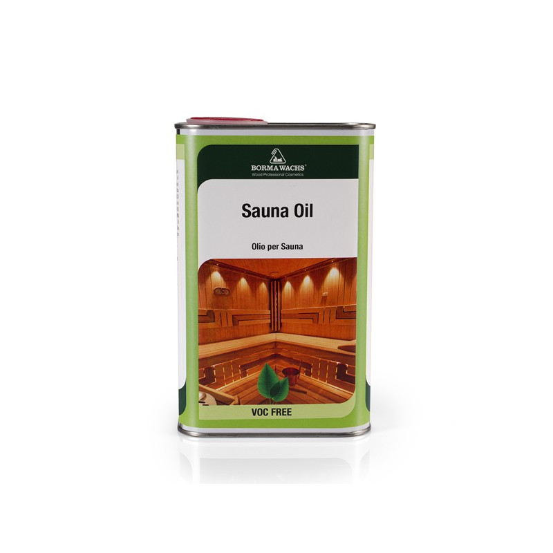 Mixture of oils specifically chosen for the treatment and maintenance of the internal surfaces of saunas (benches, walls, shelves, ceilings and flooring in raw wood) It provides a excellent water repellency, resistance to heat and condensation and protects the wood from dehydration, naturally reviving its color and grain. Sauna Oil is applied to untreated, dry and clean wood, with a rag and without excess, whenever necessary. Indicative yield: 8-16m² / Lt